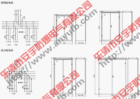 常見(jiàn)方案舉例 : (一)、多路動(dòng)力(照明)配電通過(guò)將多個(gè)防爆斷路器或動(dòng)力(照明)配電箱及數(shù)個(gè)防爆 接線箱組合,可在電壓380V,電流630A的三相 交流50Hz配電系統(tǒng)中實(shí)現(xiàn)動(dòng)力,照明配電設(shè)備的電能轉(zhuǎn)換分配及控制。 380V 630V,50Hz. (二)、多路電磁起動(dòng)配電通過(guò)將多個(gè)防爆電磁起動(dòng)器或電磁起動(dòng)箱和防爆斷路器、操作柱和防爆接線箱等組合,可在電壓380V的三相交50Hz配電系統(tǒng)中實(shí)現(xiàn)動(dòng)力配送及電動(dòng)機(jī)的集中控制,并可根據(jù)要求加裝信號(hào)、電壓表,電流表等監(jiān)控裝置。 (三)、多路降壓起動(dòng)配電將防爆降壓起動(dòng)箱置于防護(hù)柜中,實(shí)現(xiàn)對(duì)交流50Hz、電壓為380V,電路中容量為95KW 及以下的三相籠型電動(dòng)機(jī)的不頻繁降壓起動(dòng),具有短路、缺相、過(guò)流堵轉(zhuǎn)等保護(hù)功能,可用手動(dòng)、自動(dòng)和遠(yuǎn)控等多種方式來(lái)控制。 (五)、混合型根據(jù)用戶要求,將相應(yīng)的防爆電器組合,從而滿足用戶現(xiàn)場(chǎng)的需要,配電柜的常見(jiàn)外形尺寸。 2、符合GB3836-2000,IEC60079標(biāo)準(zhǔn)要求