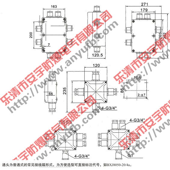 5.端子數(shù)出線口方向及數(shù)量,公稱直徑可任意變化。