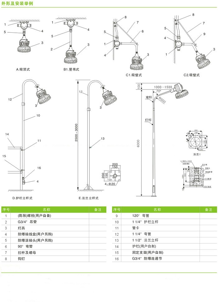 *采用IIC級(jí)防爆結(jié)構(gòu),及IP66防護(hù)等級(jí),具備優(yōu)異的防爆防護(hù)性能 *采用高硼硅鋼化玻璃,可耐受高能量的沖擊 *全部外露緊固件及其附件均采用高防腐蝕性能的不銹鋼材料制成 *采用一體式應(yīng)急腔,無(wú)需另配應(yīng)急箱,方便安裝與維修 *采用側(cè)腔開(kāi)蓋的連接方式,方便用戶接線與維修;多種安裝方式可供用戶選擇 |