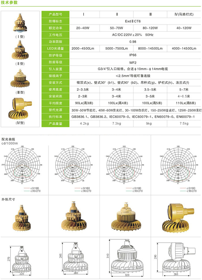 1、廣泛應用于石油開采、煉油、化工、軍工等危險環(huán)境及海洋石油平臺、油輪等場所作普通照明和作業(yè)照明之用; 2、適用于節(jié)能改造項目及檢修更換困難的場所; 3、適用于爆炸性氣體環(huán)境的1區(qū)、2區(qū)場所; 4、適用于:ⅡA、ⅡB、ⅡC;類爆炸性氣體環(huán)境; 5、溫度組別:T1~T6組溫度級別;