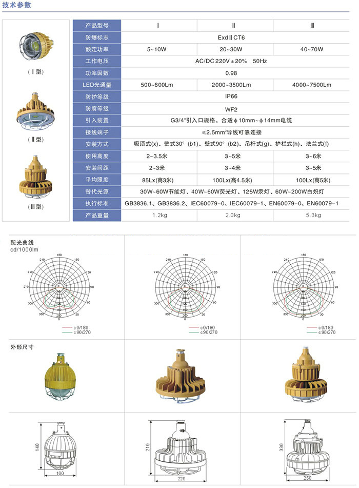 1、廣泛應(yīng)用于石油開采、煉油、化工、軍工等危險(xiǎn)環(huán)境及海洋石油平臺(tái)、油輪等場(chǎng)所作普通照明和作業(yè)照明之用; 2、適用于節(jié)能改造項(xiàng)目及檢修更換困難的場(chǎng)所; 3、適用于爆炸性氣體環(huán)境的1區(qū)、2區(qū)場(chǎng)所; 4、適用于:ⅡA、ⅡB、ⅡC;類爆炸性氣體環(huán)境; 5、溫度組別:T1~T6組溫度級(jí)別;
