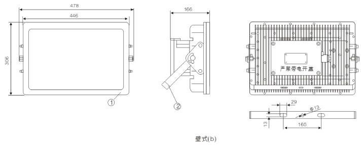 適用范圍 ●適用于爆炸性氣體環(huán)境1區(qū)、2區(qū); ●適用于II A、II B、II C級爆炸性氣體環(huán)境; ●適用于溫度組別為T1~T4的環(huán)境; ●適用于石油采煉、儲存、化工、醫(yī)藥、軍工及軍事設施等爆炸 性危險環(huán)境。 ●用作廠區(qū)或道路照明,60W.80W.100WLED ●三種規(guī)格產(chǎn)品可選;泛光(照明)燈、投光燈和馬路燈。 ◆光源模塊: 采用高亮度LED光源,配合高效率恒流驅(qū)動電源,比氣體放電燈節(jié)電達60%;LED組件全部密封,防水防塵,無需內(nèi)部清潔和維護; 電路基板熱阻低,專門設計的模塊電路,每單元故障不會影響其余組件的正常工作。 ◆電源模塊: 高效率恒流驅(qū)動電源配合智能型功率調(diào)整器;具有光通量補償功能,減少光衰,保證LED光源的光效;具有過壓保護、過電流保護及 突波電流保護功能。 ◆散熱模塊: 防爆燈外殼采用鋁合金高壓鑄造成型,表面經(jīng)拋丸后高壓靜電噴塑,有效提高了殼體的散熱性能; 電路基板緊貼鋁合金殼體,可將點熱源瞬間轉(zhuǎn)換為面熱源,散熱面積成倍增加,利于熱量迅速分散,提高散熱效率; 殼體表面具有氣流分散溝槽,借助空氣流動帶走熱量;散熱鰭片密度高,大大提高散熱面積,充分保證LED的散熱要求,使用壽命更長。 ◆配光模塊: 針對每種燈具類型專門設計的配光元件,充分發(fā)揮燈具的使用性能; ◆無紫外線輻射,能為長時間在室內(nèi)工作的用戶提供優(yōu)質(zhì)照明與健康保障; ◆光源與電源采用—體式結構,電源腔設有鉸鏈,燈具安裝更方便; ◆本系列燈具屬于免維護產(chǎn)品,節(jié)能環(huán)保; ◆壁式安裝旋轉(zhuǎn)角度可調(diào),電纜布線,吸頂式、嵌入式安裝可采用電纜或鋼管布線; ◆外露緊固件采用高防腐性能的不銹鋼材質(zhì)。